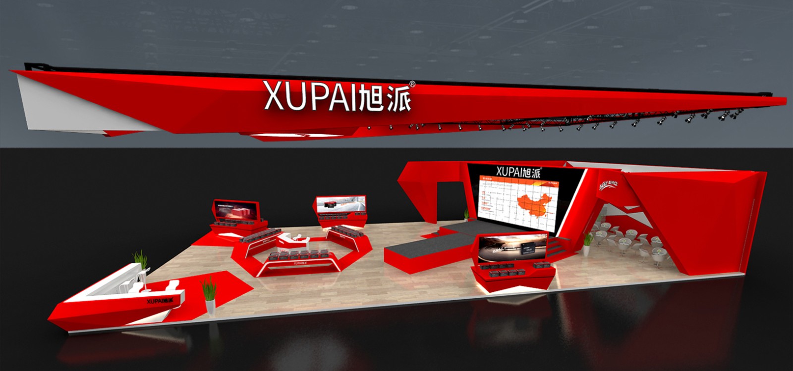 作为参与众多产品品类较量的一个平台,仅仅将企业产品展示出来还远远不够,旭派展台的创意设计也是必不可少的,一个富有创意的展台更会吸引人们目光的停驻,旭派自然是不负众望,这次的展台设计造型感激极强,在颜色的运用也是大胆耀眼,主要是以中国红为主,黑白为辅,混合运用。红色象征着旭派能够一直红火,象征员工对企业的忠诚。在展会期间,精彩表演,活动众多,450平米的展出面积被围个水泄不通,足以彰显旭派的品牌魅力。